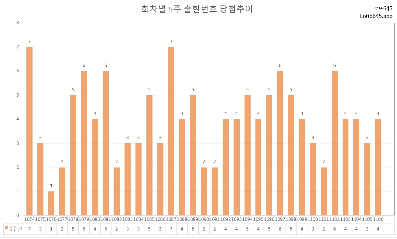 회차별 5주 출현 당첨 추이